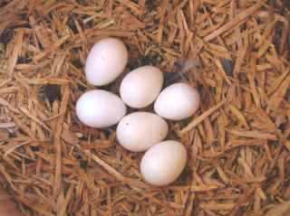 4-6 weiße Eier ca. 34-38mm x 27-30mm groß